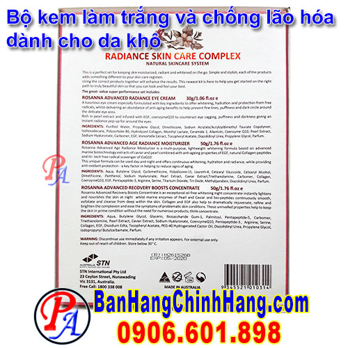 Bộ kem làm trắng và chống lão hóa dành cho da khô Rosanna Natural Active Ingredients Radirance Skin Care Complex