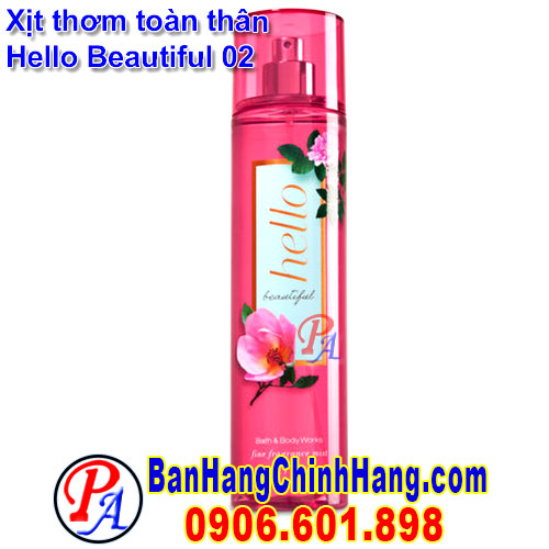 Xịt thơm toàn thân Hello Beautiful là sự pha trộn của hương hoa mộc lan, hoa sơn chi, hoa mẫu đơn hồn & hổ phách trắng. Thành phần có chứa tinh chất lô hội Aloe Vera: giúp dưỡng ẩm, làm mịn da. Dưỡng chất vitamin E, lô hội & bơ hạt mỡ nuôi dưỡng da mềm mại, căng sáng.